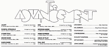 Reissue, originally released in 1969. After collaborating with Gabor Szabo on such influential "rare groove" albums as More Sorcery (1967) and Dreams (1968), bassist Louis Kabok and drummer Hal Gordon further embraced jazz-rock fusion under The Advancement moniker. Their self-titled album from 1969 opens with the moody expressiveness of "Juliet" moving on "Moorish Mode" on more interesting drums break. Their heady melting pot of jazz, hard rock, and psychedelia is anyhow well described on closing number "Fall Out".