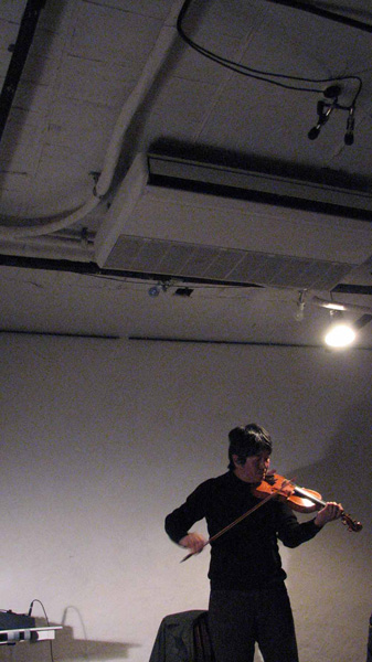 "At first, Agencement was started as an anonymous tape music project in 1985. It started from an indie movement that had occurred in inverse proportion to the calm situation of Japan's mid-'80s domestic improvised music scene. As for activity of violin performances that I started from the influence of European improvised music after it is related to the edit of underground music magazine named Avant-Garde that Kanazawa University students issued from 1976 until 1979, several years have passed from beginning. I played the violin in various places at that time, for instance, I have participated at the '2nd Ten Minutes Solo Improvisation Festival' (1982) at Kyoto Seika University, and I sometimes performed violin + live electronics solo at Merzbau cafe, etc. I was gradually editing them with multi-track though the magnetic tapes that recorded live performances. Such a work style originates from the drawing works which I started producing when I was a teen. The work of my 1st LP was made by using a cheap analog multi-track tape recorder and took 1 year. The flow of such time has not basically changed in the studio work of me digitalized now too. In 1986, I was able to come in contact with artists such as Merzbow, Toukaseibunshi, 10T and others through compilation cassette releases, etc. Masami Akita who had contact for several years recommended it though I did not think that I make LP of myself at first." --Hideaki Shimada